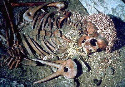 Verso la fine del Paleolitico, con l’homo sapiens troviamo i segni di veri e propri rituali di sepoltura dei morti (i defunti sono sepolti con ornamenti, spesso ricoperti di tinture coloranti e di fiori, di cui sono stati rinvenuti i pollini).